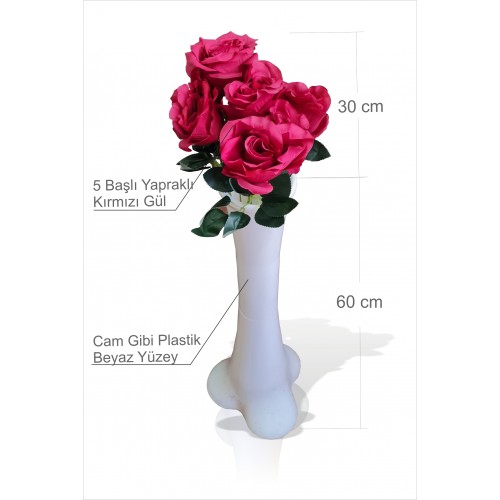 En Uzun Büyük Geniş Kırmızı 5 Gül Beyaz 60cm Kırılmaz İnce Bel Dengeli Devrilmez Kırılmaz Konik Vazo
