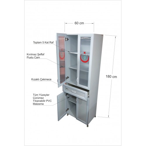 Yıkanabilir Paslanmaz Şişmez Çürümez Klinik Eczane Revir Sağlık Ocağ Kabini Hastane Acil İlaç Dolabı